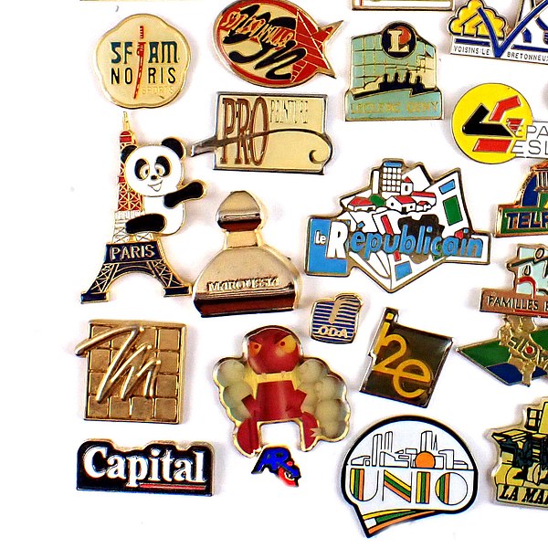 フランス ピンズ 雑貨 ヴィンテージ ピンバッジまとめて50個セット まとめ売り 大量 フレンチ ビンテージ 広告 モニター画面2パンダとエッフェル塔など