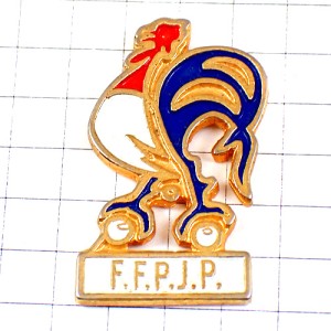 ピンバッジ・ニワトリ雄鶏ペタンクの球トリコロール青白赤 FFPJP PETANQUE FEDERATION FRANCAISE FRANCE