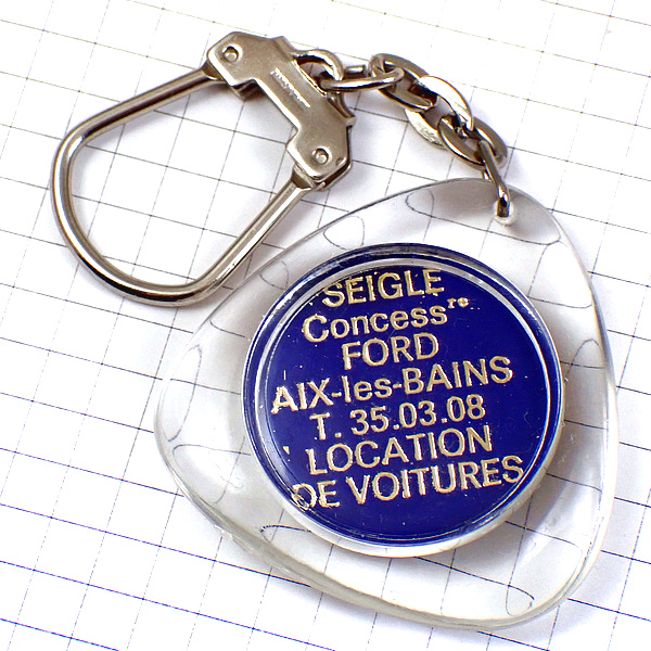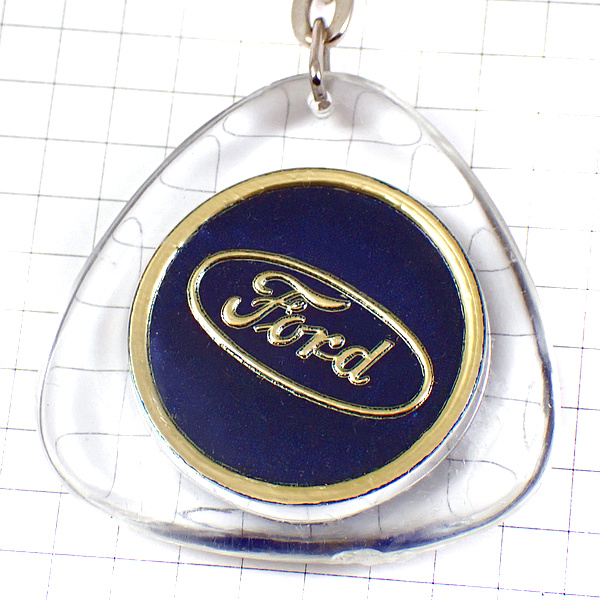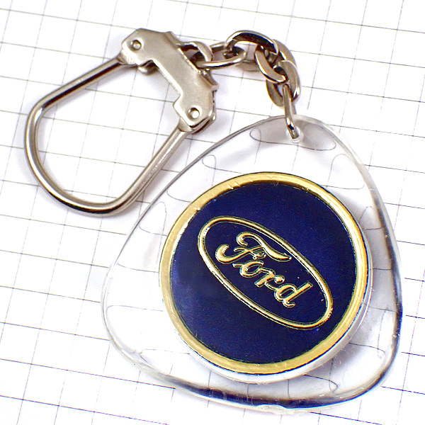 キーホルダー・フォード車ロゴ銀色エンブレム青