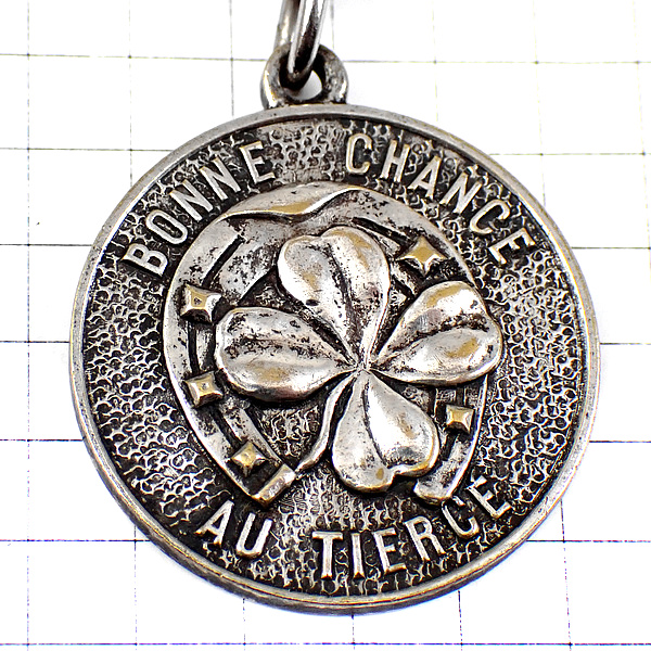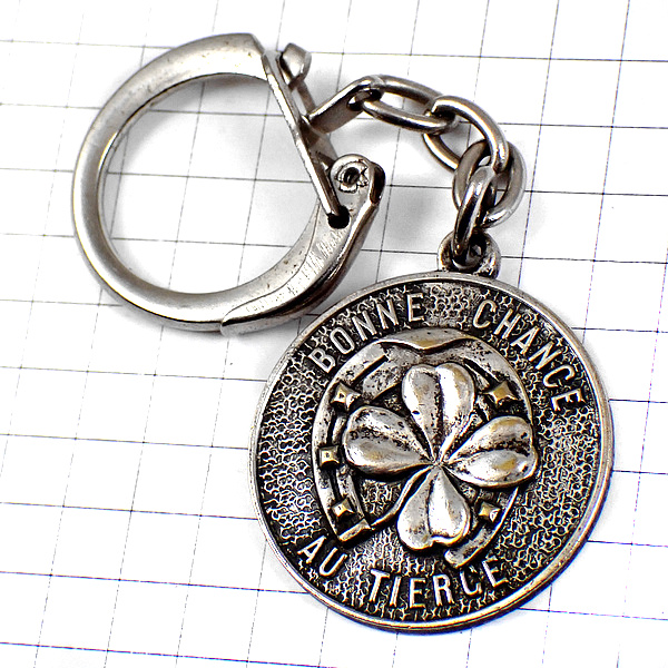 キーホルダー・四つ葉のクローバー銀色シルバー STATION-SHELL PORTE-BONHEUR CHANCE