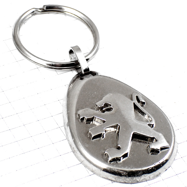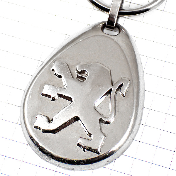 キーホルダー・プジョー車ライオンのロゴ銀色シルバーエンブレム PEUGEOT FRANCE
