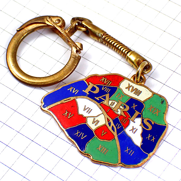 キーホルダー・パリの観光地図いくつもに別れた区セーヌ川 PARIS-MAP ARRONDISSEMENTS FRANCE