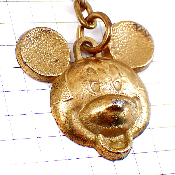 キーホルダー・ミッキーマウス金色ディズニー笑顔 DISNEY MICKEY