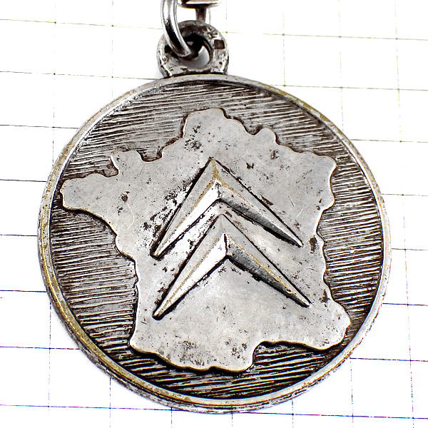 キーホルダー・シトロエン車エンブレム銀色フランス地図型シルバーロゴ CITROEN FRANCE MAP