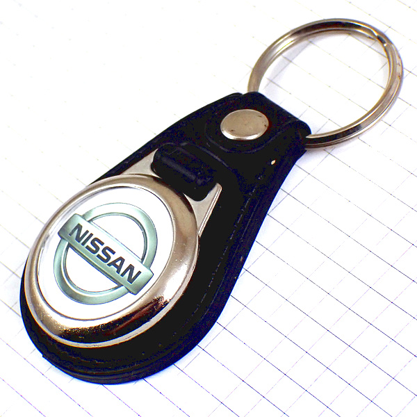 キーホルダー・日産自動車レザー黒い革シルバー銀色
