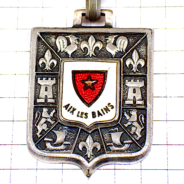 キーホルダー・エックスレバン星の紋章ニワトリ百合の紋章ライオン城塞シルバー銀色船