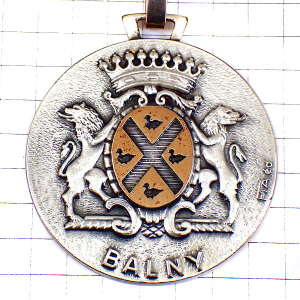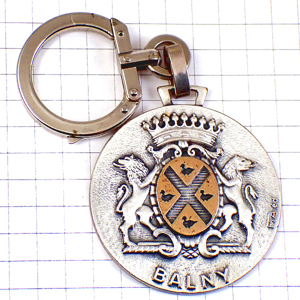 キーホルダー・ライオンと王冠と鳥たちの紋章バルニー銀色シルバー