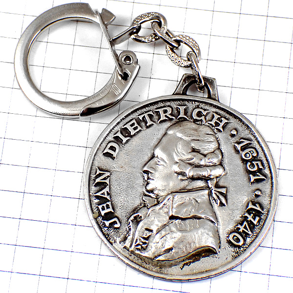 キーホルダー・ホルン音楽シルバー銀色ディートリッヒ横顔肖像画 JEAN-DIETRICH DE-DIETRICH FRANCE