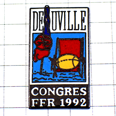 ピンバッジ・ドーヴィル海岸デッキチェア球ラグビーボール椅子パラソル