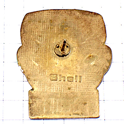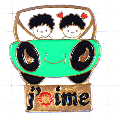 ピンバッジ・ドライブする二人カップル緑色の車シェル石油 SHELL ENGLAND
