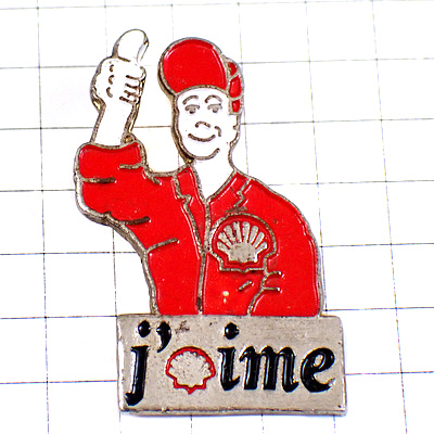 ピンバッジ・ガソリンスタンド給油スタッフ赤い制服シェル石油 SHELL ENGLAND