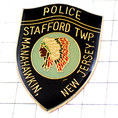 ピンバッジ・ニュージャージー州ポリス警察アメリカ/USAネイティブアメリカン羽飾りの戦士