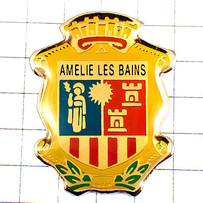 ピンバッジ・城塞と聖人と太陽の紋章アメリー=レ=バン=パラルダ AMELIE-LES-BAINS FRANCE