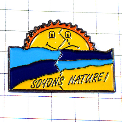 ピンバッジ・笑顔の太陽とビーチ海岸