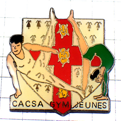 ピンバッジ・体操選手グリーン緑のレオタード赤い十字