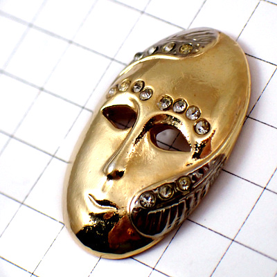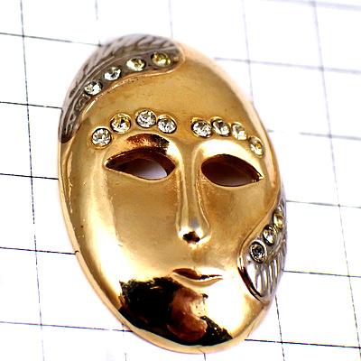 ピンバッジ・金色のマスク仮面ラインストーン