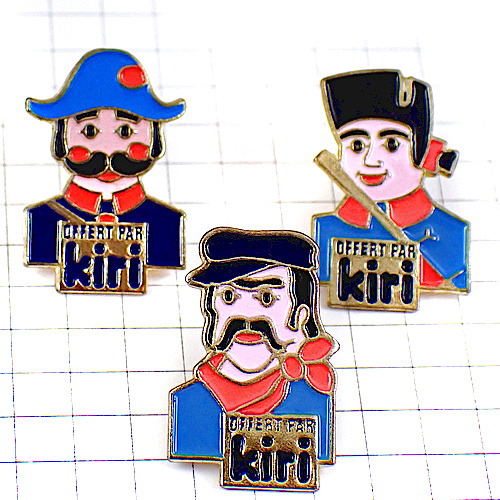 ピンバッジ・キリのチーズおもちゃの兵隊さん3個セット KIRI MARIONNETTE GUIGNOL FRANCE