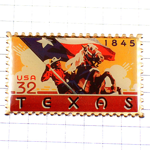 ピンバッジ・テキサスのカウボーイ郵便切手型アメリカ/USA