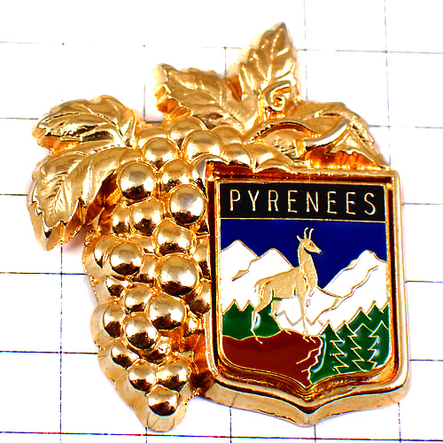 ピンバッジ・紋章ピレネー山脈ワイン葡萄酒ブドウの房や葉っぱゴールド金色 PYRENEES GRAPE WINE FRANCE