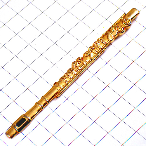 ピンバッジ・フルート音楽ゴールド金色の楽器