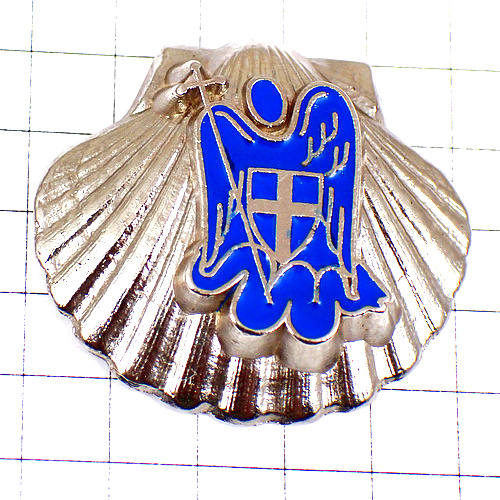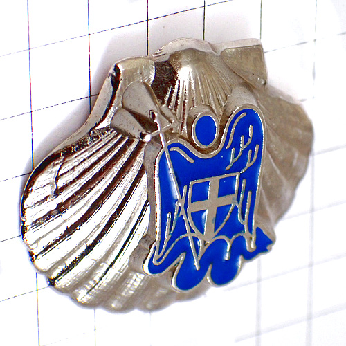 ピンバッジ・サンティアゴデコンポステーラの帆立貝二枚貝シェル海の幸シルバー銀色 COMPOSTEL PELERINAGE SPAIN
