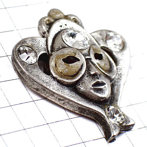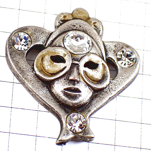 ピンバッジ・ラインストーンのマスク仮面ベニスのカーニバル祭ヴェネツィア伊イタリア銀色シルバー VENEZIA ITALIA ITALY