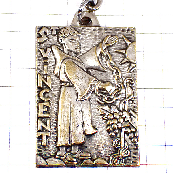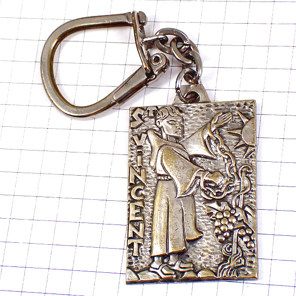 キーホルダー・太陽ブドウの収穫神父さんワイン葡萄酒シルバー銀色 ST-VINCENT SILVER GRAPE FRANCE