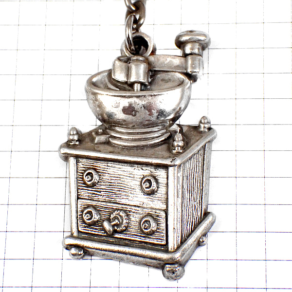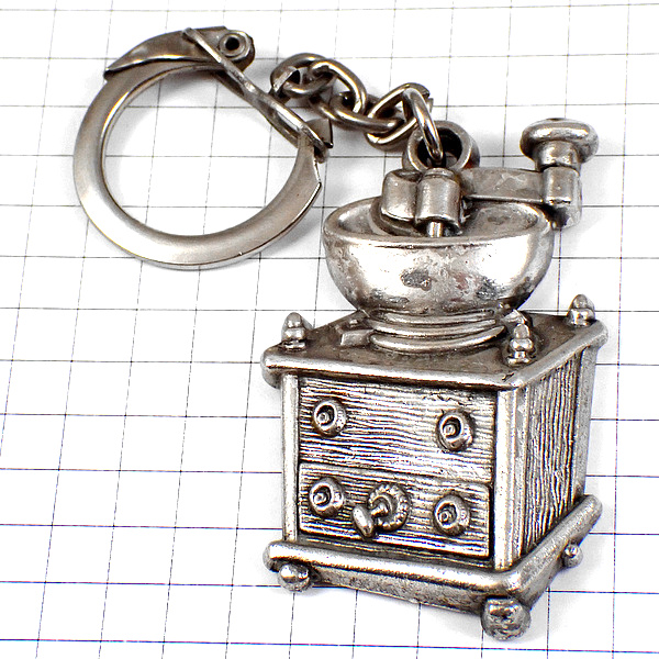 キーホルダー・コーヒーミル珈琲豆挽き機シルバー銀色 CAFES-COFFEX FRANCE