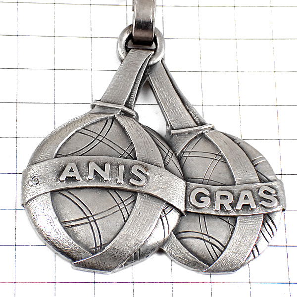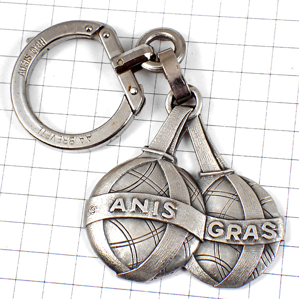 キーホルダー・ペタンク球を投げるベレー帽の男シルバー銀色 PETANQUE ANIS-GRAS FRANCE