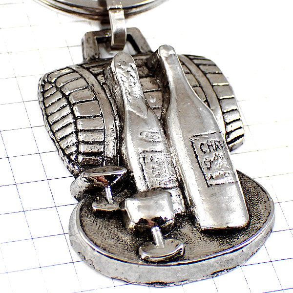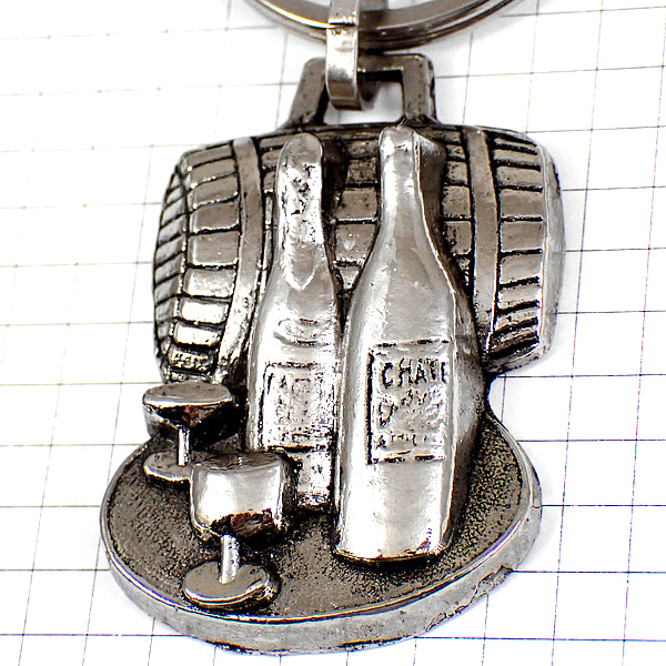 キーホルダー・ワインの酒樽と瓶ボトルとグラス銀色シルバー CHAMPAGNE MOUSSY FRANCE