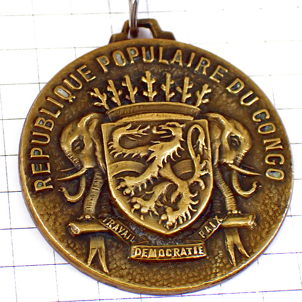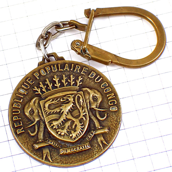 キーホルダー・ゾウ象ライオン紋章スプリングボック動物エールアフリク航空会社ブロンズ色 AIR-AFRIQUE CONGO