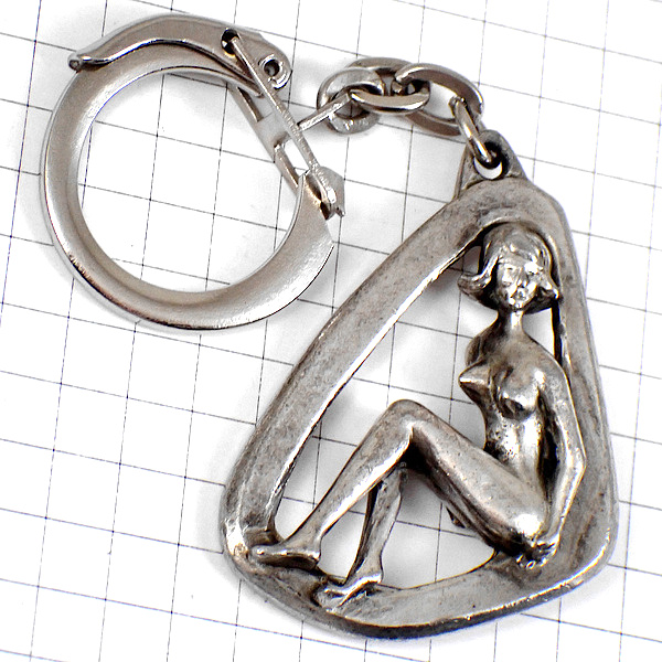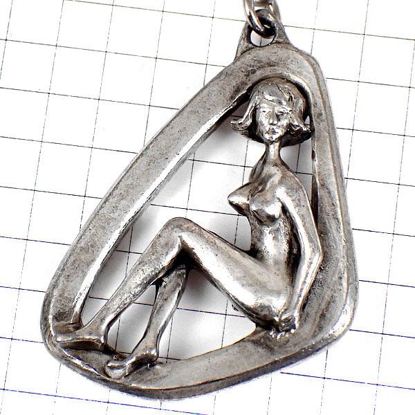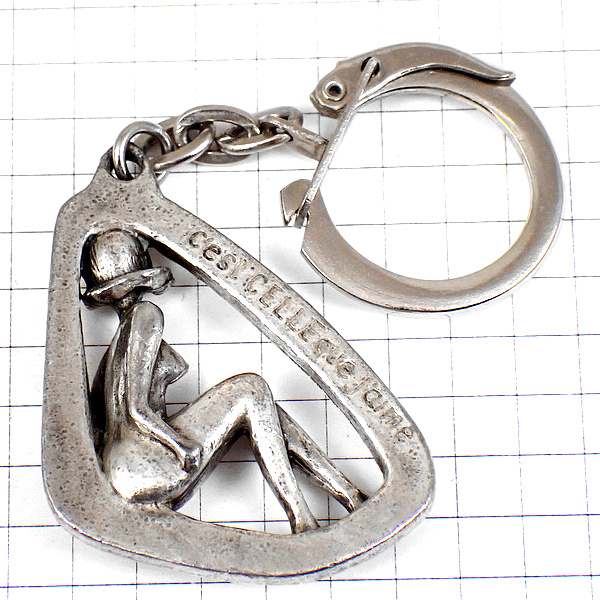 キーホルダー・セクシーヌードの女の子シルバー銀色 CELLE-QUE-J-AIME PINUP FRANCE
