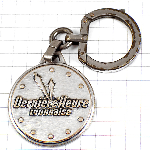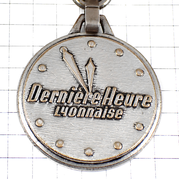 キーホルダー・時計12時5分前11:55文字盤シルバー銀色 DERNIERE-HEURE FRANCE