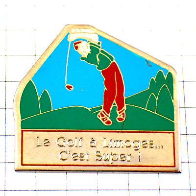 ピンバッジ・ゴルファー選手クラブを振り回すゴルフ場グリーン