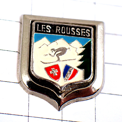 ピンバッジ・スキーヤーの紋章アルプスの雪山レルース