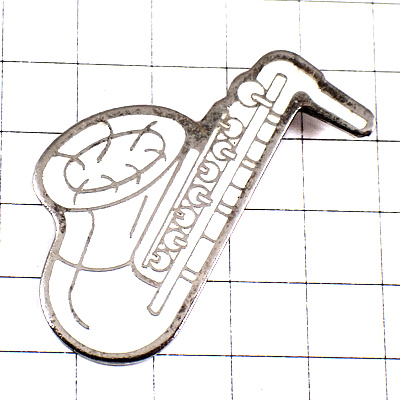 ピンバッジ・白いサックス音楽サクソフォン楽器 SAXOPHONE