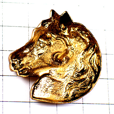 ピンバッジ・金色のウマ馬ゴールドたてがみカール