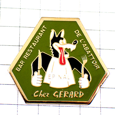 ピンバッジ・お腹をすかせた狼オオカミ食事レストラン店ナイフとフォーク