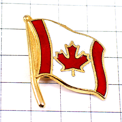 ピンバッジ・はためくカナダ国旗カエデ赤い楓の葉っぱ