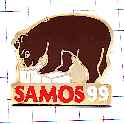 ピンバッジ・チーズを食べる茶色いクマ熊 CHEESE SAMOS99 FRANCE