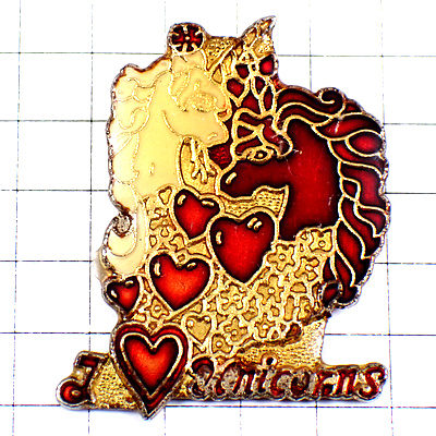 ピンバッジ・ユニコーン赤と白の一角獣ハート馬