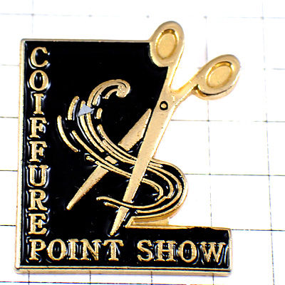 ピンバッジ・カールした髪ハサミ美容師の道具ゴールド金色