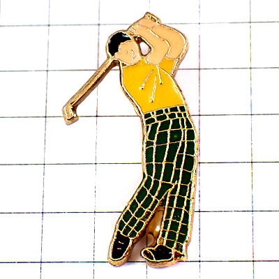 ピンバッジ・ゴルファー緑チェック柄ゴルフ