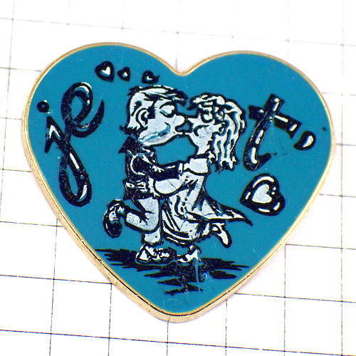 ピンバッジ・ジュテーム大好きハート男の子と女の子 JE-T-AIME FRANCE