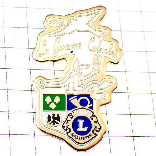 ピンバッジ・オリーブの葉をくわえた鳩ハト鳥ライオンズクラブL紋章