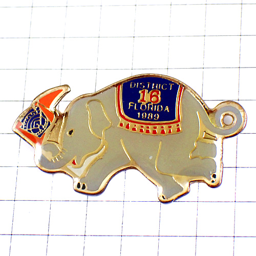 ピンバッジ・灰色のゾウ象エレファント背中に絨毯