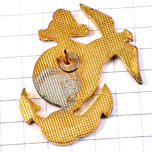 ピンバッジ・金色のイカリ錨イーグル鷲わし鳥アメリカ軍海兵隊/USAゴールド地球 US-MARINES