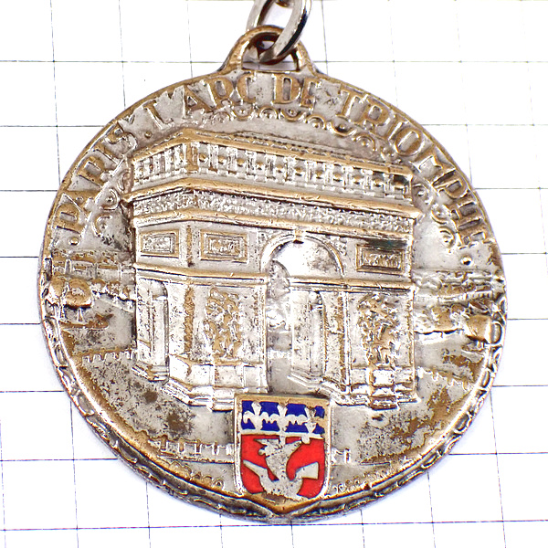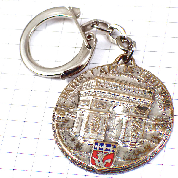 キーホルダー・エッフェル塔と凱旋門パリ市セーヌ川の船の紋章シルバー銀色 TOUR-EIFFEL ARC-DE-TRIOMPHE PARIS FRANCE