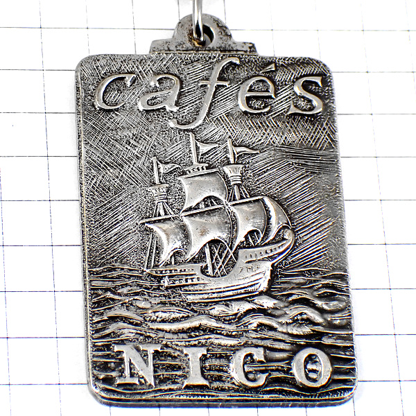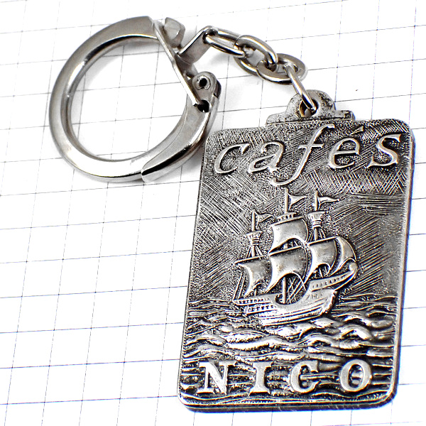 キーホルダー・大航海時代の帆船ボート珈琲カフェニコNICOコーヒー店シルバー銀色