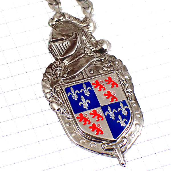 キーホルダー・ライオンと百合の紋章ジャンダルム国家憲兵隊シルバー銀色シュバリエ騎士の甲冑